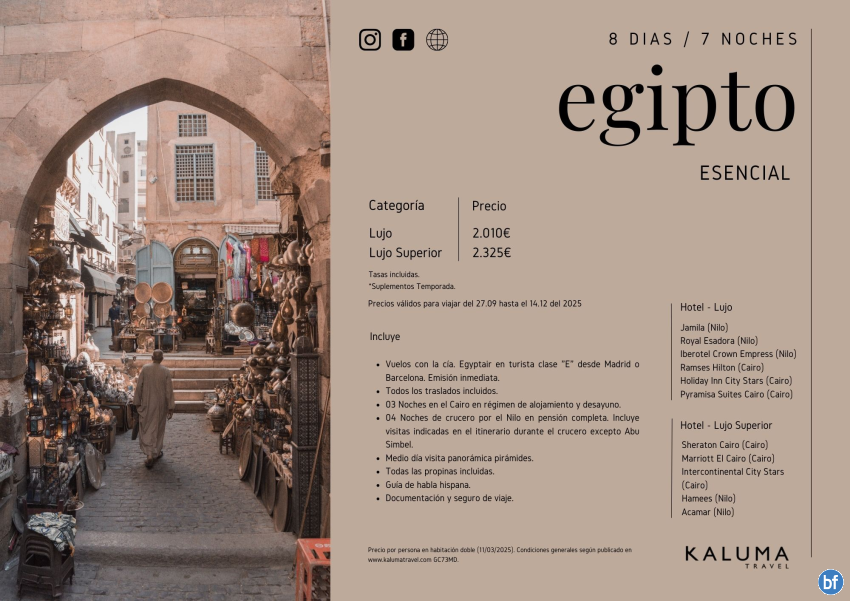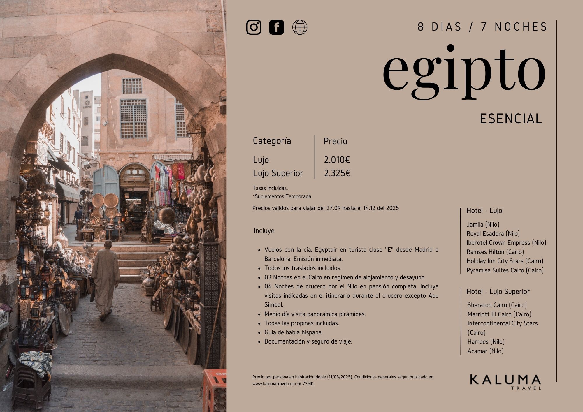 Egipto Esencial 7 noches - Salidas regulares desde Barcelona y Madrid hasta Diciembre desde 2.010€
